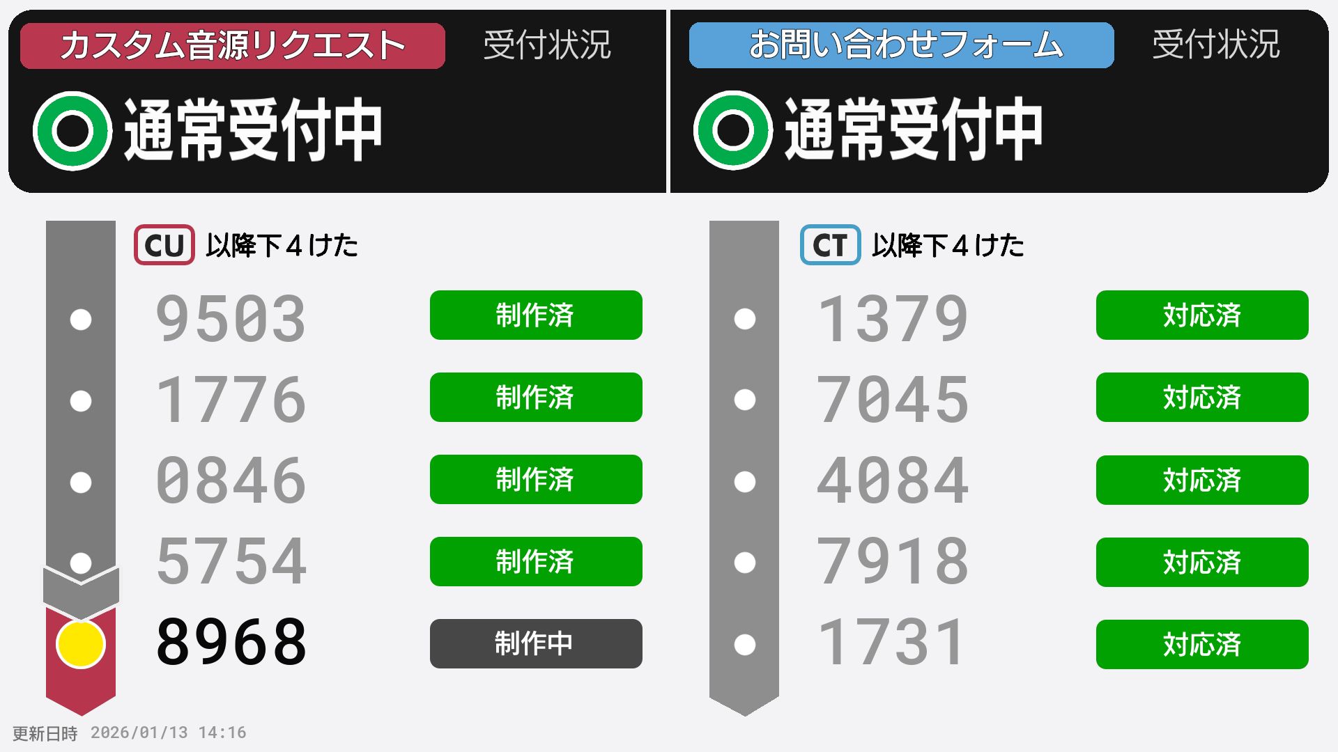 | 制作No. 曲名/アーティスト |