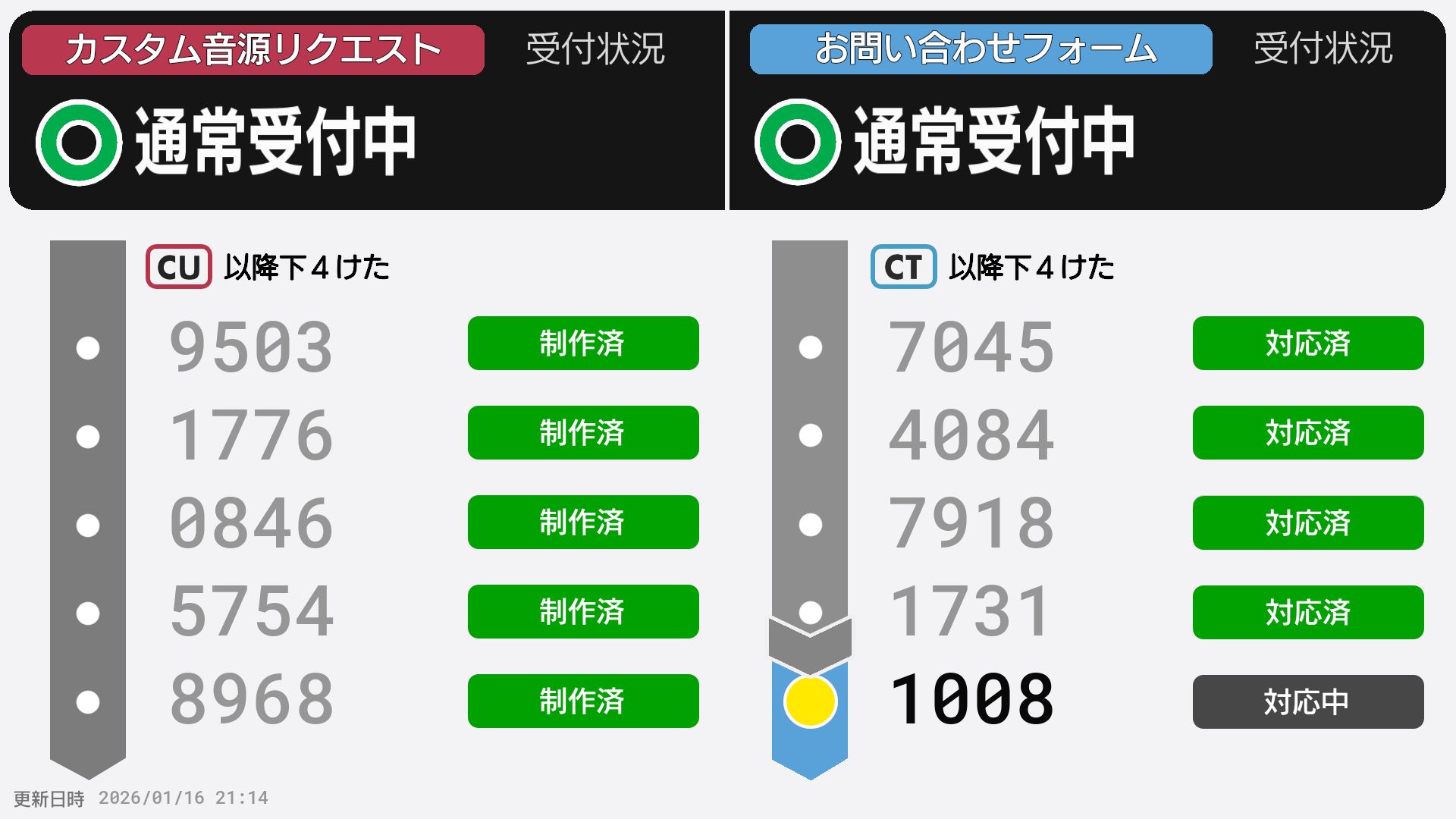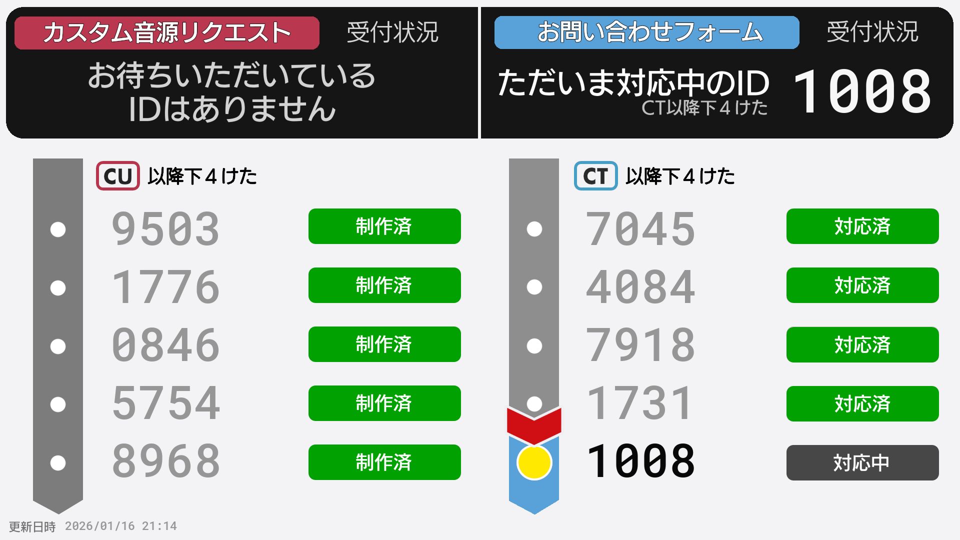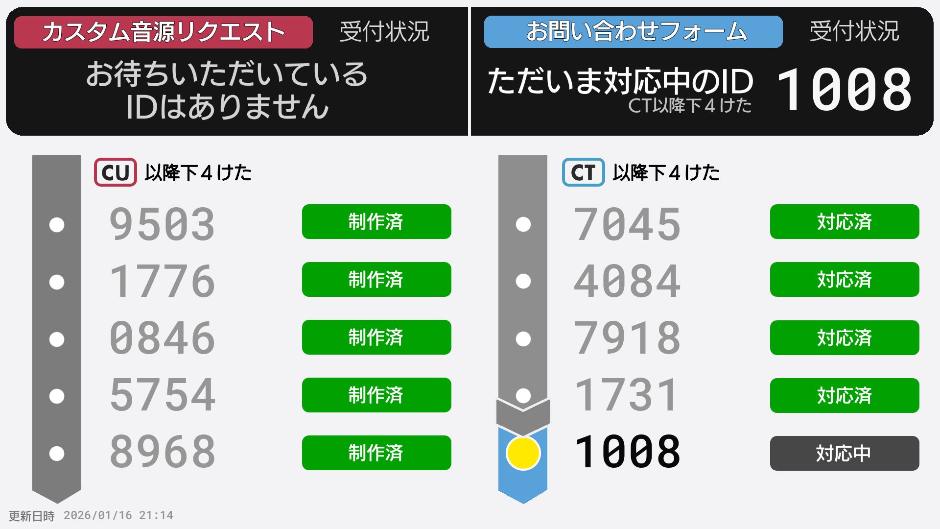 | 制作No. 曲名/アーティスト |