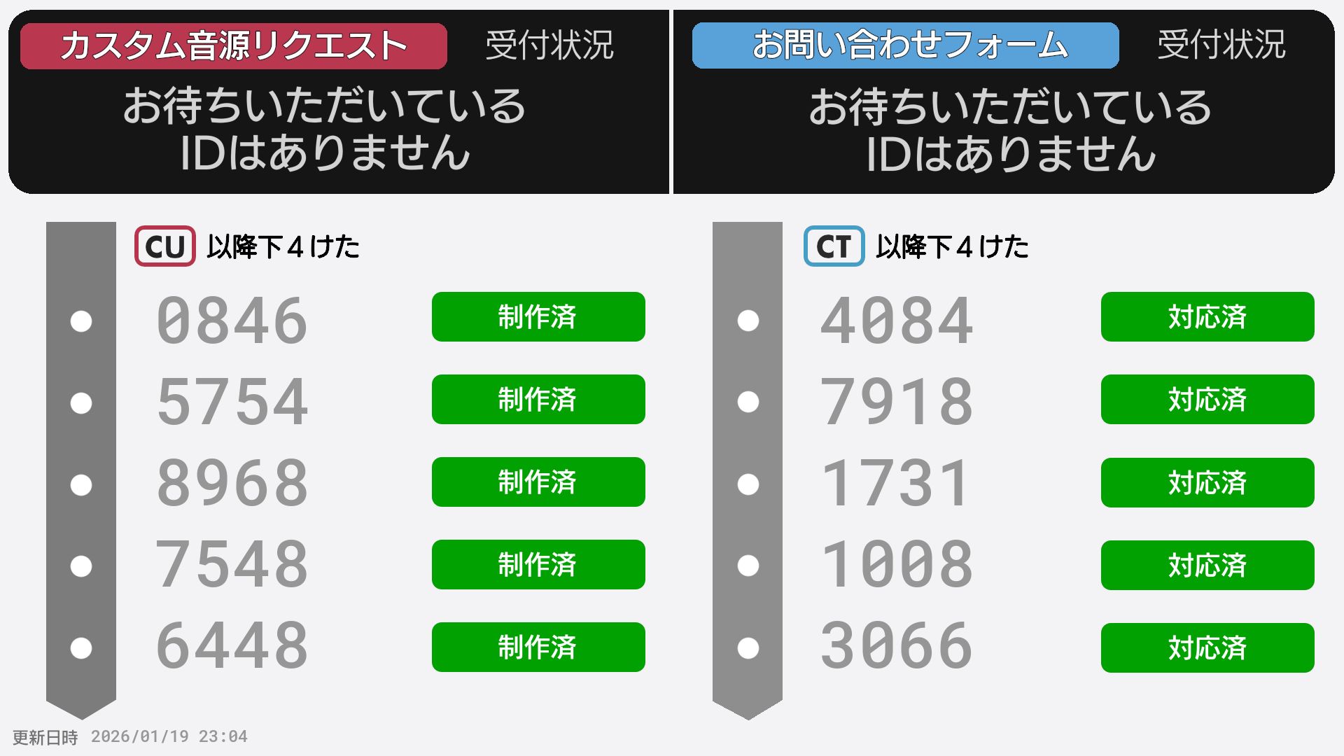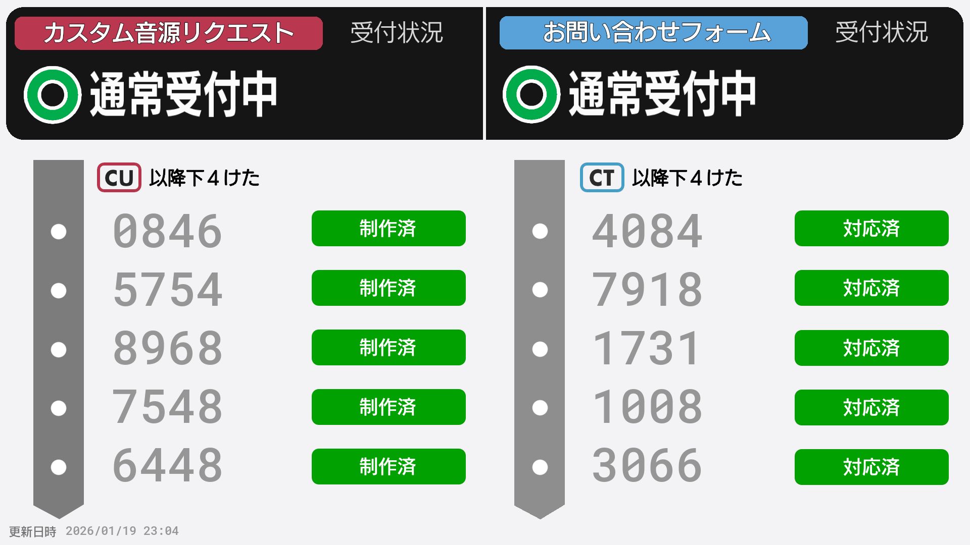 | 制作No. 曲名/アーティスト |