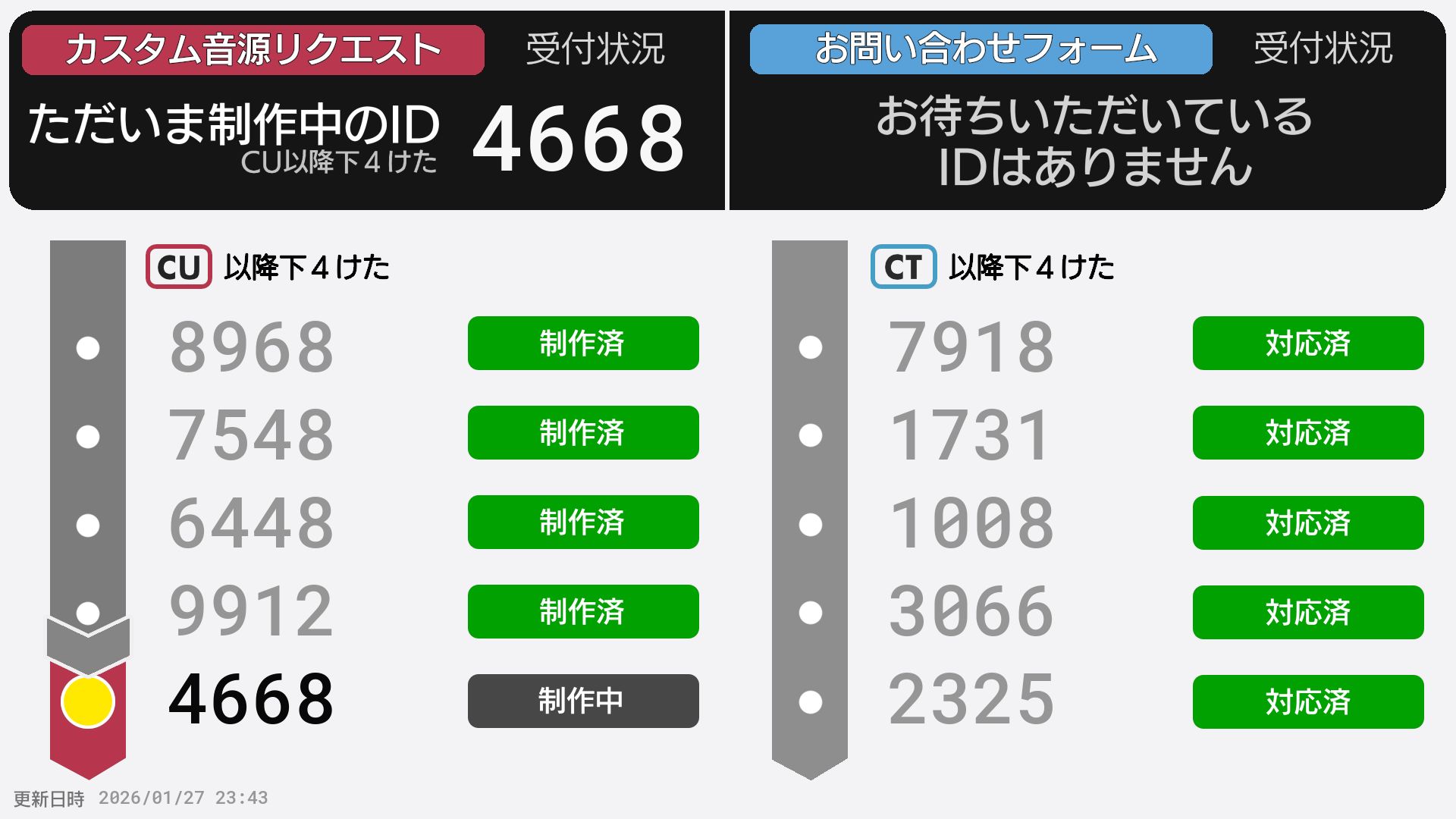| 制作No. 曲名/アーティスト |