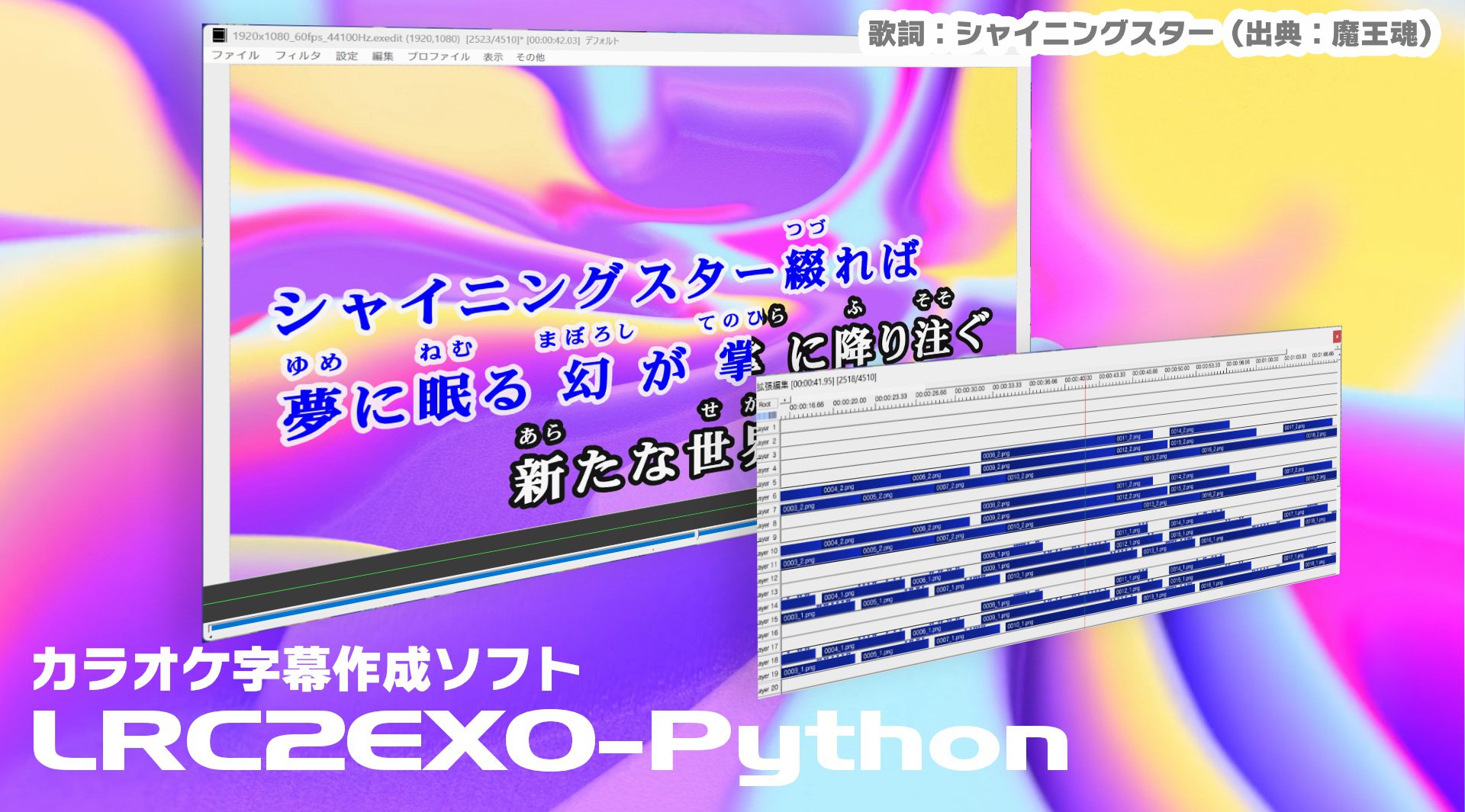 【NEW】メロディーラインのMIDIデータ、LRC歌詞ファイルで簡単にカラオケ字幕動画を作成し再生・録画できる(ffmpeg使用)、動画編集ソフトが不要のスタンドアローンのソフトウェアです。